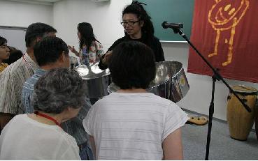 今回で9回目となるレクチャーコンサートが7月21日に開かれ、多くの方々にご参加いただきました。 スティールパンはドラム缶から作られた音階を持つ打楽器で、カリブ海の島国、トリニダード・トバゴ共和国で20世紀に発明されました。 今回のレクチャーコンサートでは、独特の明るい響きを持つスティールパンを中心にした楽しいバンド演奏をお楽しみいただきました。