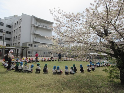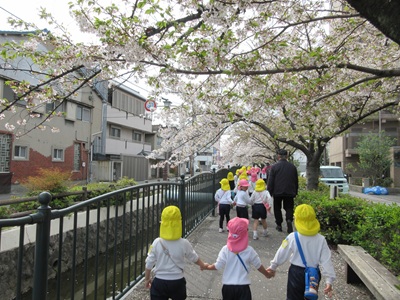 今日は長瀬川沿いに咲いている桜を見に年長・年中組が散歩に行きました😊