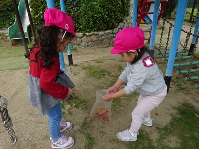 「見て~!キレイな葉っぱいっぱい」