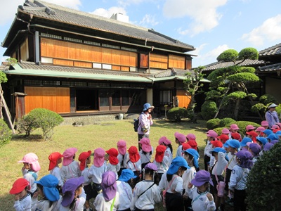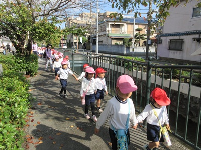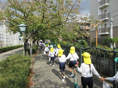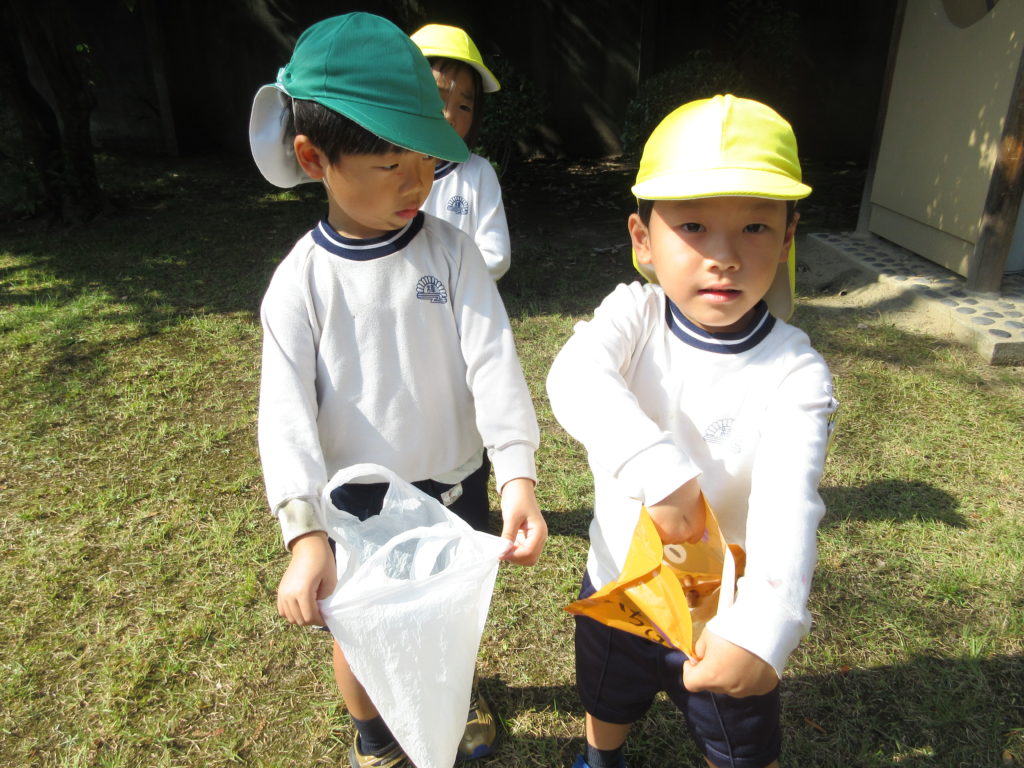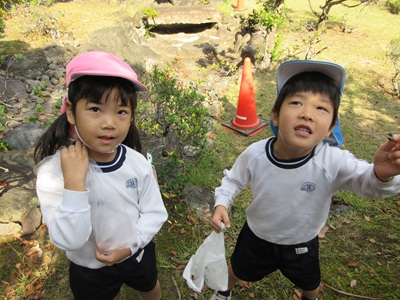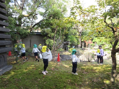 今日は、朝からどんぐりを拾いに樟徳館へ行きました!
