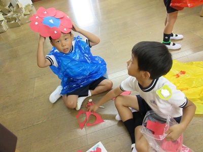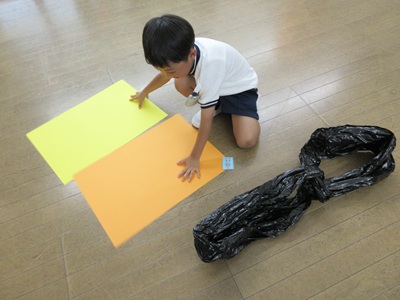 何を作っているのかな??いろんな材料を組み合わせて・・・
