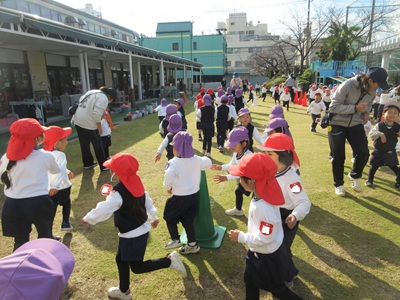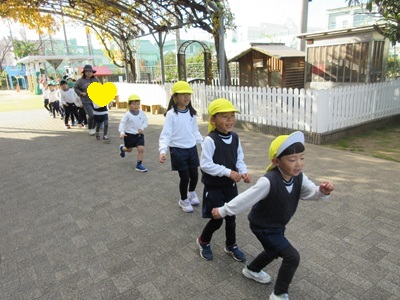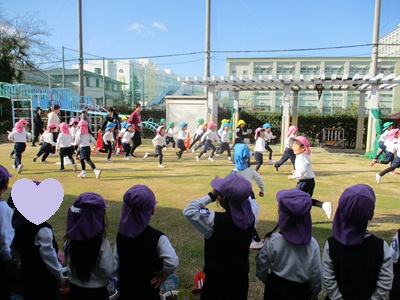園庭で少し走って