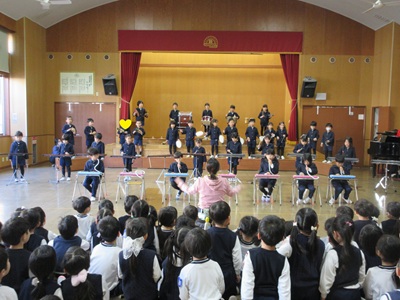 楽器を演奏する年長さんたち🎵