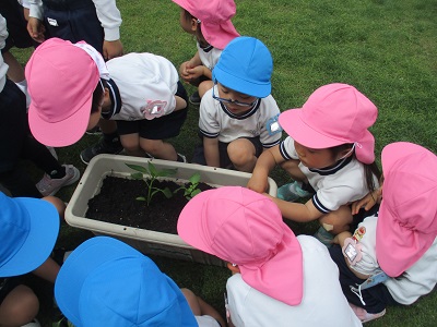 野菜の苗を植えるのに興味深々の様子でした🎶
