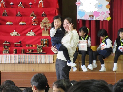 先生に抱っこしてもらって