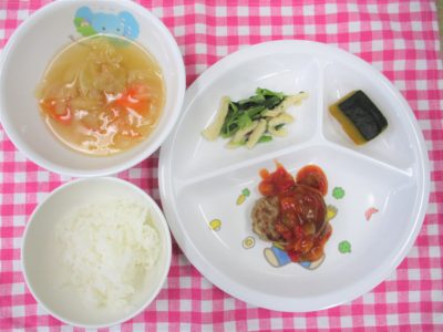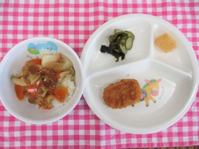 ・中華丼 ・たまご焼き ・白菜とツナの煮物 ・ぶどうゼリー