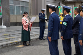 「春の交通安全県民運動出発式」に先立って、香芝警察署長から委嘱状を受け取り、「交通安全への誓い」を読み上げました。その後、市内に出向いて香芝市長と交通安全を呼びかけるチラシを配布して啓発活動に貢献しました。
